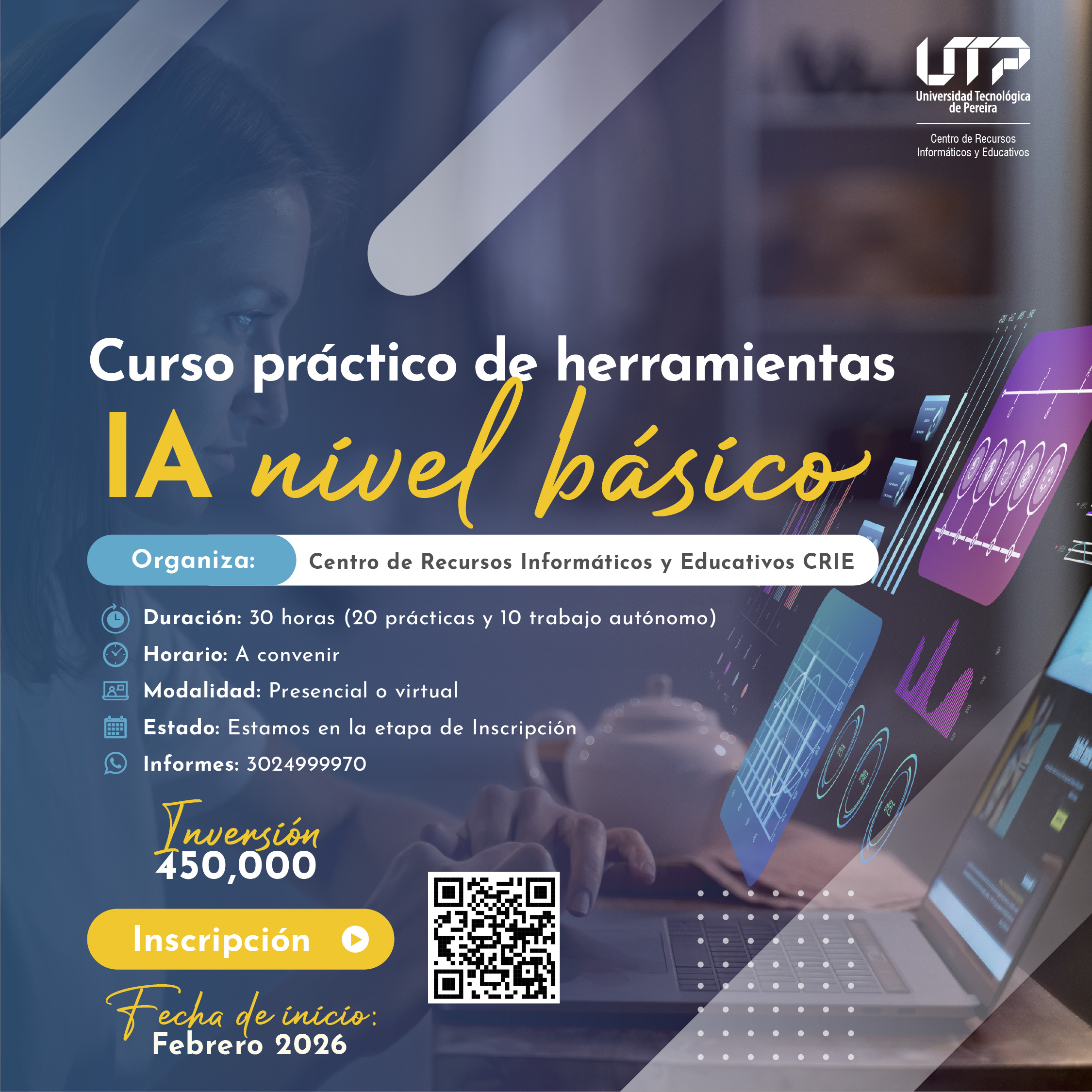 Una vez realizado el pago, debes enviar el comprobante de pago y su CC o TI al correo cursoscrie@utp.edu.co